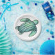 watercolor painted sea turtle cartoon blue green paper plate