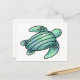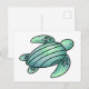 watercolor painted sea turtle cartoon blue green postcard