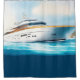 Watercolor Painted Yacht on the Blue Water Shower Curtain