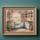 Watercolor Painting of Farmhouse Kitchen Poster