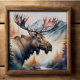Watercolor Painting of Moose in Nature The aspect ratio is 1:1. It was designed to be printed as 20"x20" 16"x16" 12"x12"