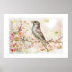 Watercolor Painting of Sparrow Eating Berries Poster