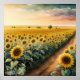 Watercolor Painting of Sunflower Landscape. The aspect ratio is 1:1. It was designed to be printed as 20"x20" 16"x16" 12"x12"