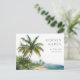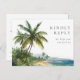 An elegant watercolor tropical palm tree beach RSVP card with chic typography. The reverse features your details and a fun guest song request. Designed by Thisisnotme©