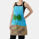 Apron in a beach scene of tropical palms, sand and sky made from a digital collage of watercolor and patterned images
