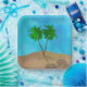 Watercolor Palm Tree Beach Scene Collage Paper Plate