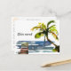 A tropical watercolor palm tree leans out over the water on this southern/Florida themed change of address postcard. The scene also includes a wooden dock, typical of homes on intracoastal waterways. Text on front and back of the card is customisable for your personal greeting and contact details. Matching new address label is also available.