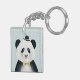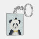 This design features asmart dressed panda bear in a hat and bow tie on a soft polka dot background.