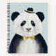 This design features asmart dressed panda bear in a hat and bow tie on a soft polka dot background.