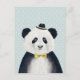 This design features asmart dressed panda bear in a hat and bow tie on a soft polka dot background.