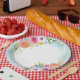 Beautiful watercolor floral design on a paper plate, perfect for adding charm to any gathering or event.