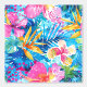 A seamless pattern featuring Hawaiian flowers like hibiscus, birds of paradise, and orchids in a vibrant watercolor style. The design captures the lush and exotic beauty of tropical flora with rich, vivid colours and artistic fluidity