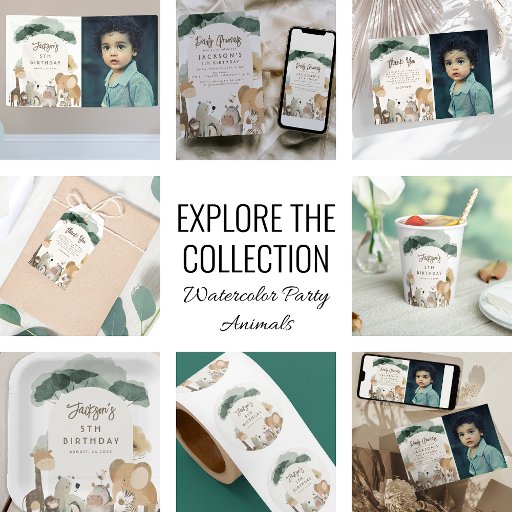 Looking for a unique and stylish theme for your kid's birthday party? Look no further than our subtle watercolor animal theme! Featuring soft shades of browns, greys and greens, this theme includes the beloved animals of elephant, giraffe, and monkey. To add a modern touch, we even have a sleek arch and party thank you template to match. Your child and their guests will love the whimsical charm of this theme. Don't settle for a boring party - choose our watercolor animal theme for a memorable and special celebration.