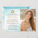 Watercolor Pastel Blue Gold Bat Mitzvah Photo Invitation