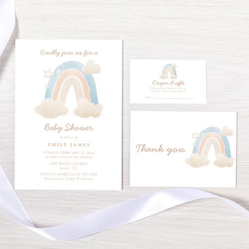 Looking to create lasting memories at your Baby Shower? Our exclusive collection, customisable by you, is the perfect solution! Watercolor Pastel Boho Rainbow Baby Shower Thank You Card.