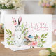 Watercolor Pastel Pink Roses Bunny Happy Easter Card
