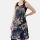 watercolor pattern peacock on a tree cherry,flowering trees. protea flower,retro colours. tree branches. pink chrysanthemum