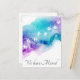 New address moving announcement postcards featuring paw prints on a blue and purple watercolor background. Customisable text on the front "We have moved". Add your new address and personal message to the back.