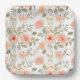 Watercolor Peach Floral Birthday Shower Party Paper Plate