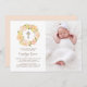 Invite guests to your event with this customisable photo baptism invitation. It features a peach peony wreath. Personalise this botanical invitation by adding your details. This floral wreath baptism invitation is perfect for spring and garden events.