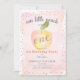 This cute girl's 1st birthday invitation features a peach in watercolor on a white background with blush pink watercolored brush strokes and faux gold doodled dots. The reverse side features pink gingham check patterns. Personalise for your needs. You can find more matching products at my store.
