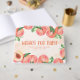 Among the green leaves painted in watercolor, sweet little peaches are decorated with lovely and cute letters.