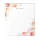 Customisable floral notepad featuring watercolor illustrations of peaches, peonies, eucalyptus and other floral and foliage accents. This will be a perfect feminine accent for your office.