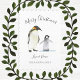 Watercolor Penguin Merry Christmas Merry bright Holiday Card