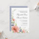 Watercolor peonies and blue berries and greenery frame the text in this unique wedding invitation design.