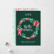 This design featuring a peppermint and candy cane Christmas wreath with holly and pine on a dark green background. On the back of the card is a peppermint striped pattern wth peppermint candy. You can customise all the text. See the whole matching collection.
