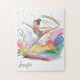 Watercolor Personalised Cute gymnastics girl Pink jigsaw puzzle