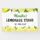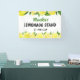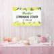 Cute watercolor bright lemonade stand banner featuring watercolor yellow lemons and greenery. Easy to personalise with your child's name.