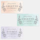 A pastel watercolor trio of waterproof name labels featuring hand drawn grey laurel branches with name and phone number or classroom. A great way to keep your kids and your own personal items from getting lost. Easily label personal items like lunch boxes, water bottle, coats, books, binders and more. Easily washable and dishwasher safe.