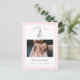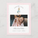 Cute watercolor Peter Rabbit baby girl Thank you Birth announcement postcard with photo and birth stats with pink and white gingham border.