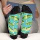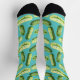 These unisex socks feature watercolor pickles on a turquoise background for a fun novelty look.