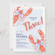 Watercolor Pinch Me Lobster Coastal 3rd Birthday Invitation