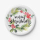 Merry Christmas | Add a festive accent to your Christmas party table setting with these holiday paper plates. They feature a holiday wreath of watercolour holly and rustic brush calligraphy. These Christmas paper plates are available in other items. Matching items are available.