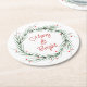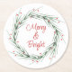 Watercolor Pine Needles and Berries Wreath Round Paper Coaster