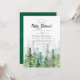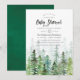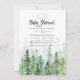 Baby it's cold outside Baby Shower invitation card featuring conifers and trendy handwriting typography.