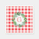 Watercolor Pine Wreath MONOGRAM Red Check Napkin