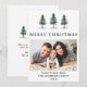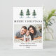 Watercolor Pine Trees Merry Christmas Family Photo Modern Christmas Card