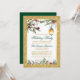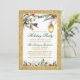 Modern Elegant Watercolor Pine Cones, Holly Berries and Poinsettia Floral Holiday Party Invitation Card - Green Script, Gold Glitter Frame
