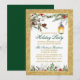 Watercolor Pines Poinsettia Glitter Holiday Party Invitation
