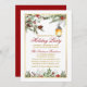 Watercolor Pines Poinsettia Holiday Party Gold Invitation