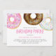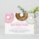 Watercolor Pink and Chocolate Doughnuts Birthday Invitation