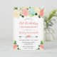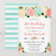 Watercolor Pink and Mint Flowers 21st Birthday Invitation