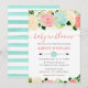 Watercolor Pink and Mint Flowers Baby Shower Invitation