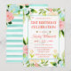 Watercolor Pink and Mint Flowers Birthday Invitation