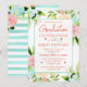 Watercolor Pink and Mint Flowers Graduation Invitation