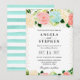 Watercolor Pink and Mint Flowers Wedding Invitation